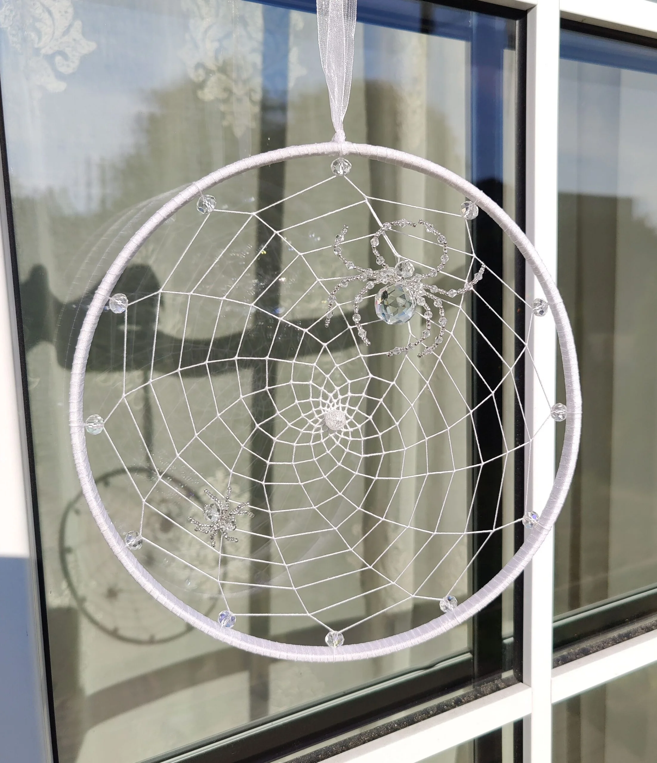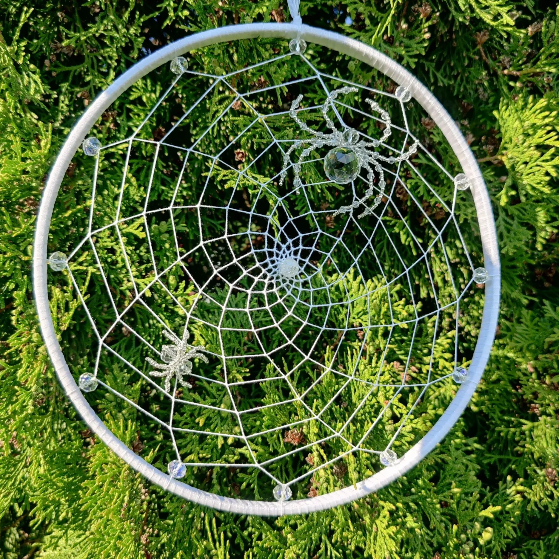 Päikese- ja unenäopüüdja “Ämblikuvõrk” on kaunistatud klaaspärlite ja ämblikega.